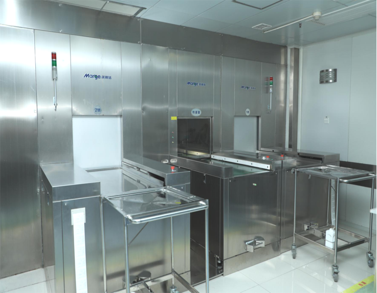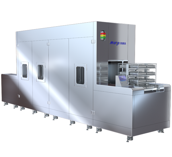 3、四艙真空多艙處理工藝:噴淋預(yù)清洗→真空超聲波加酶清洗→真空沸騰加酶清洗→噴淋漂洗→熱水噴淋消毒→凈熱風(fēng)循環(huán)干燥